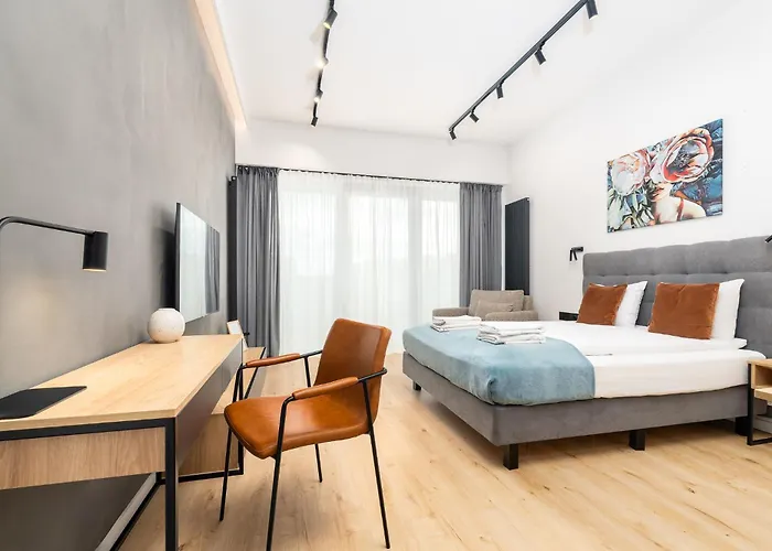 Ved at opholde sig i Margi Ether Apartament Lux Pool Balcony ferielejlighed, kan gæsterne slappe af på en terrasse eller nyde en 25 minutters gåtur til Stettin. Denne ferielejlighed måler 33 m² og har 1 soveværelser, 1 badeværelser og et tekøkken.